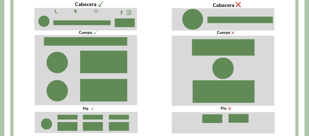 Una buena arquitectura web consta de: Buena distribución de la cabecera, del cuerpo de la página y del pie de la página.
